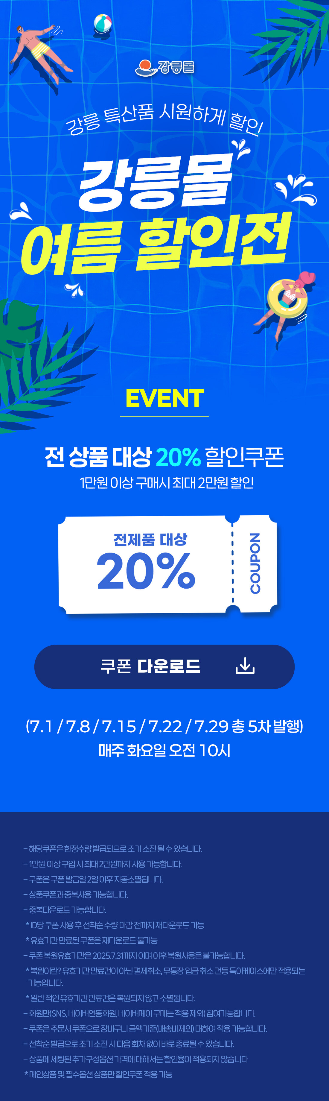 • 2025 강릉몰 여름맞이 전상품 20% 할인쿠폰 이벤트